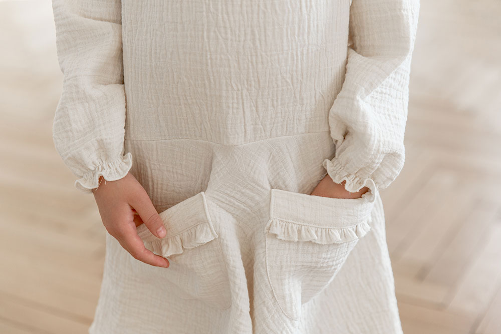 Charming vintage inspired and versatile pinafore style with cotton lace trim